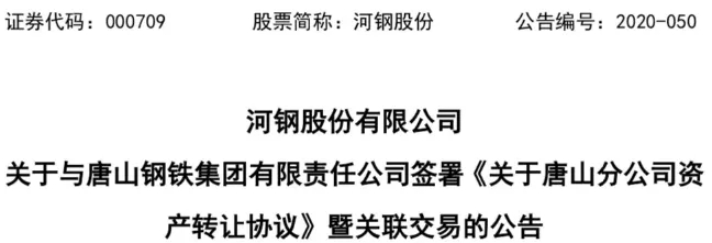 同日,河鋼股份公告稱,公司于9月8日與河鋼唐鋼簽署了《關(guān)于唐山分公司資產(chǎn)轉(zhuǎn)讓協(xié)議》,擬將唐山分公司關(guān)停資產(chǎn)轉(zhuǎn)讓給唐山鋼鐵集團(tuán)有限責(zé)任公司。